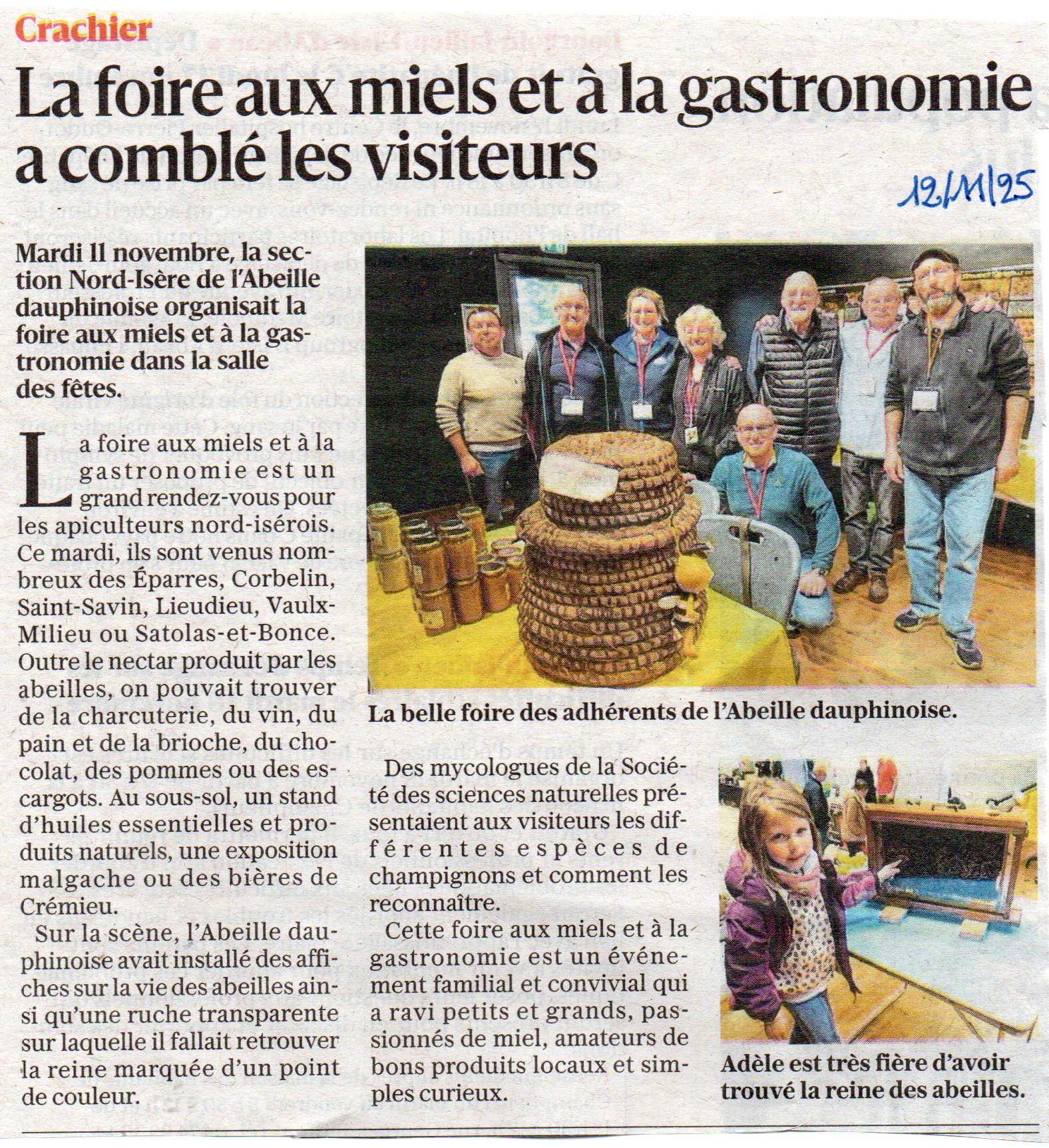 Le Dauphiné Libéré parle de nous : section Nord Isère Grande journée du 11 novembre : Le public était au rdv lors de la foire aux miels à Crachier Écrit par AD le dimanche novembre 16, 2025 Lien permanent - « Section St Marcellin : remise des diplômes - Formation Initiation : les dates de toutes les Sections sont sur le site »