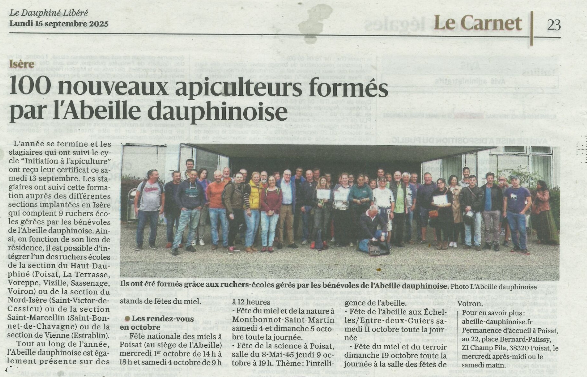 Quand le Dauphiné Libéré parle de nous ce 15 sept 25 : Le Dauphiné Libéré parle de nos formations et des prochains stands d'octobre Écrit par AD le samedi septembre 20, 2025 Lien permanent - « Formation Initiation HD : dernier cours et photo de groupe - Assemblée Générale de la Scapiad (Coop) : merc 15 oct 2025 »